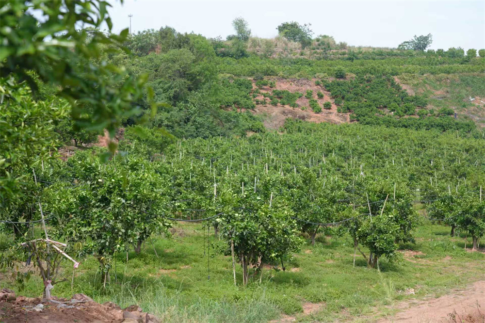 6月中旬夏季修剪,疏果定果;剪去徒长枝、过密枝,控旺粗壮、培养结果母枝,为来年结果做准备。疏除小果、畸形果、病虫果,减少养分浪费,让营养集中供给优质果实,提升单果重量与甜度。7月浇水、除草、施肥夏季气温高,柑橘需要增加浇水量;除去杂草,避免杂草竞争土壤养分和水分,同时能减少病虫害的滋生。7月果实开始发育,用复合肥进行追肥,为果实膨大提供养分。8月疏果与撑果疏掉小果、病果、裂果、畸形果、花皮果等不合格的果实,挂果量大的枝组还要疏掉部分正常果实。疏果后枝条太软严重下弯的枝条需要撑果,避免枝条折断或重叠。