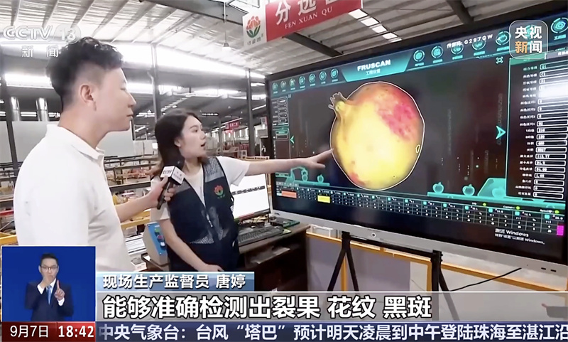在寸金地®的分选车间,每一颗石榴都要经历“三重考验”,方能抵达消费者手中。